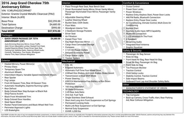 Designed to elevate your driving experience, the 2016 Jeep Grand Cherokee 75th Anniversary Edition is a testament to Jeep's commitment to innovation and craftsmanship. With its impressive capabilities, premium features, and distinctive style, this SUV is poised to exceed your expectations and redefine your idea of what a Jeep can be.